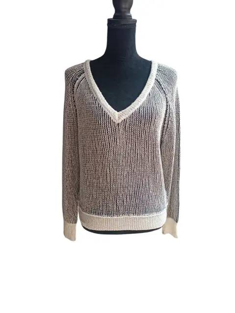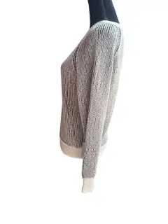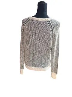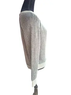 SWEATER BLANCO CON NEGRO,MARCADO COMO S (QUEDA HASTA XL) MARCA LUMIERE, MIDE DE HOMBRO A HOMBRO 38.5 CM, DE AXILA A AXILA 46 CM, DE LARGO 56 CM,ACRILICO