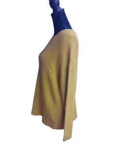 SWEATER MOSTAZA HOMBRO SEMI DESCUBIERTO. SWEATER MOSTAZA,HOMBRO SEMI DESCUBIERTO,MARCADO COMO S (QUEDA HASTA XL) MARCA LUMIERE, MIDE DE HOMBRO A HOMBRO 67 CM, DE AXILA A AXILA 54 CM, DE LARGO 70 CM,VISCOSE
