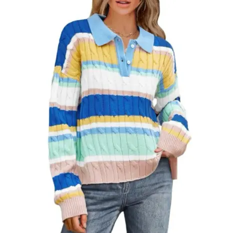 Sweater multicolor. Lindo sweater nuevo con etiqueta; talla M (viene amplio); pequeñas aberturas a los lados