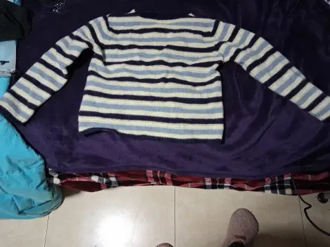 Sweter Azul. Hermoso sweter rayado, cuello v, talla M pero es mucho más chico, tela 100% wool