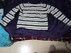 Hermoso sweter rayado, cuello v, talla M pero es mucho más chico, tela 100% wool
