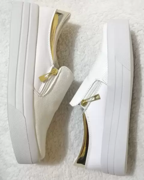 Hermoso Tenis Blanco Diseño cierres dorados laterales. Mexicano Acomoda Número #23cm. Visita mi clóset para más modelos o pregunta si necesitas otra númeración. Si es tu primer compra dentro de la App usa mi descuento -$100 pegando en el código promocional: lucyrmxXqQJ9