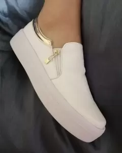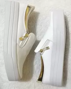 3 Tenis Blanco cierres dorado. Hermoso Tenis Blanco Diseño cierres dorados laterales. Mexicano Acomoda Número #23cm. Visita mi clóset para más modelos o pregunta si necesitas otra númeración. Si es tu primer compra dentro de la App usa mi descuento -$100 pegando en el código promocional: lucyrmxXqQJ9