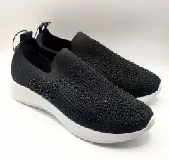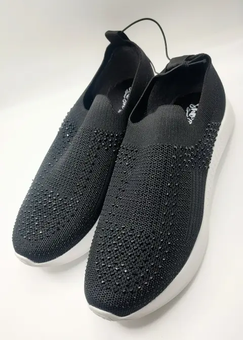 4 Tenis Textil Pedrería. Hermoso tenis texitl suave color negro diseño brilloso de pedrería. Número Mexicano #24cm. Suela flexible antiderrapante. Visita mi espacio o Pregunta por el número que necesites.