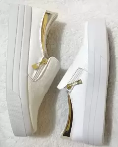 6 Tenis Blanca cierres dorado. Hermoso Tenis Blanco Diseño cierres dorados laterales. Vinipiel contra salpicaduras. Mexicano Acomoda Número #26cm. Visita mi clóset para más modelos o pregunta si necesitas otra númeración. Si es tu primer compra dentro de la App usa mi descuento -$100 pegando en el código promocional: lucyrmxXqQJ9