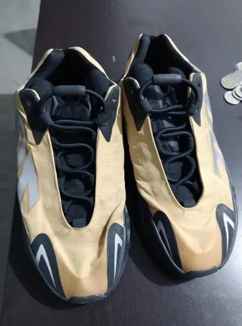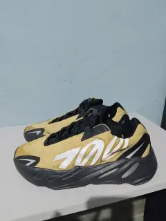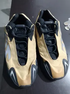 Adidas Yeezy Boost 700. Talla :4.5Modelo: Honey Flux De uso en buen estado.La parte superior está confeccionada con una ligera capa de poliéster de color amarillo, con el distintivo logo "700" reflectante en el lateral. También incorpora capas sin costuras, una lengüeta acolchada en negro y cordones elásticos sin nudos del mismo color.