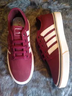 Tenía casual de hombre. Tenis casual de hombre Talla 27Color vino con franjas blancas.Suela sintética.Nuevos y cómodos.