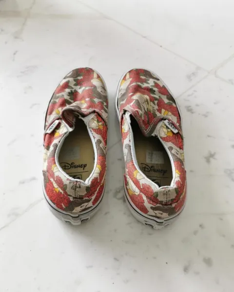 Tenis estampados Vans Disney. Tenis de lona con estampado de Bella con rosas. Estan en buen estado, aplastados y opacos por estar mal guardados y por humedad. Número 1 México.