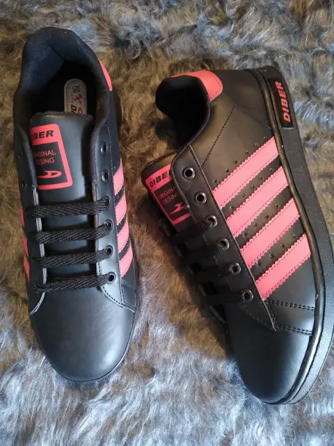 Tenis hombre. Tenis casual de hombre Color negro con franjas rojas Talla 26Suela sintética Corte sintético nuevos y cómodos