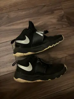 Tenis Nike Team Hustle OG. Estos tenis son perfectos para deporte, vienen con agujeta y aparte con una agarradera de Velcro para que las agujetas no te molesten. Tienen detalles plateados y son extremadamente cómodos.