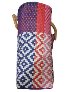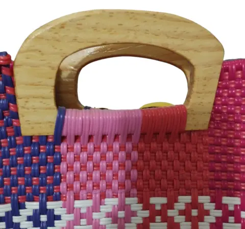 Bolso artesanal fabricado con tiras de plástico, tejido a mano.Dimensiones. 35*25*15 cm (largo/alto/ancho)Técnica de tejido. Cestería Material. Tiras de polietileno y asa de madera