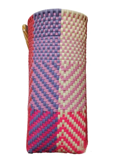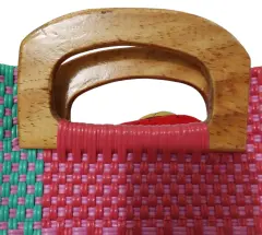 Bolso artesanal fabricado con tiras de plástico, tejido a mano.Dimensiones. 35*25*15 cm (largo/alto/ancho)Técnica de tejido. Cestería Material. Tiras de polietileno y asa de madera