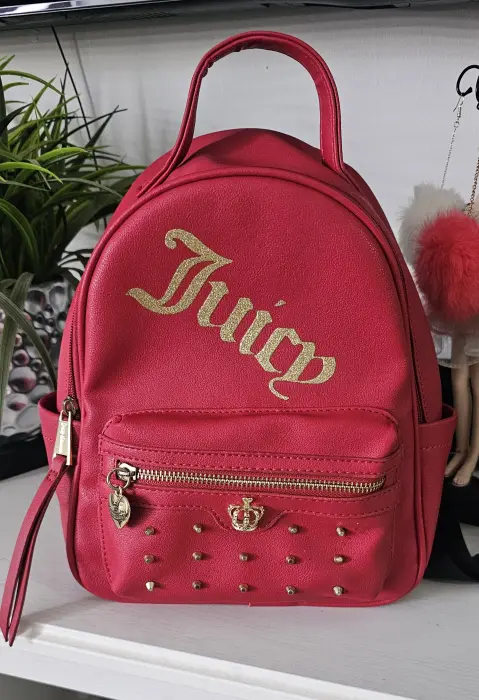 Mochilita Juicy Couture. Mochilita estilo casual en color rojo y detalles en color dorado con tirantes negros ajustables,Muy poco uso se encuentra en perfectas condicionesOriginal.