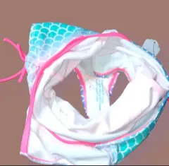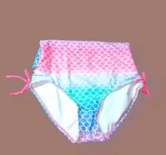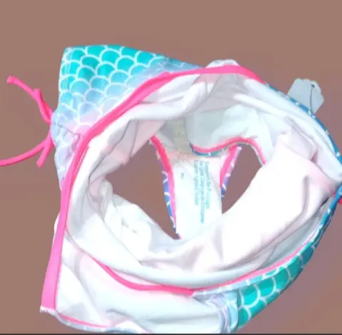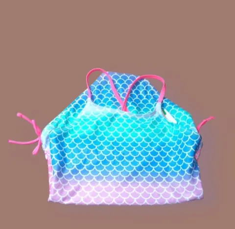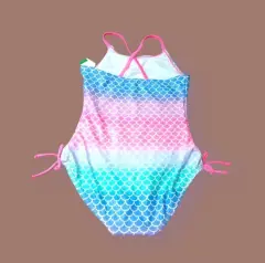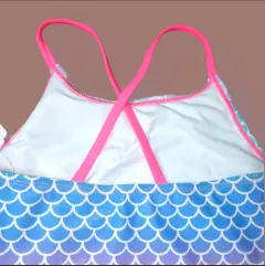 Traje de Baño Completo O'Rageous, talla 12, multicolor Verde agua, rosado y Azul con graficos simulando escamas, tirantes cruzados atras, elastico con Liston adjustable en piernas, tela expandable, frente de cuello Redondo, Nuevo a estrenar con etiqueta.