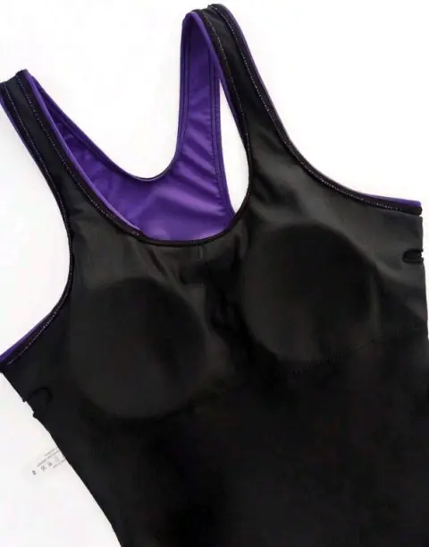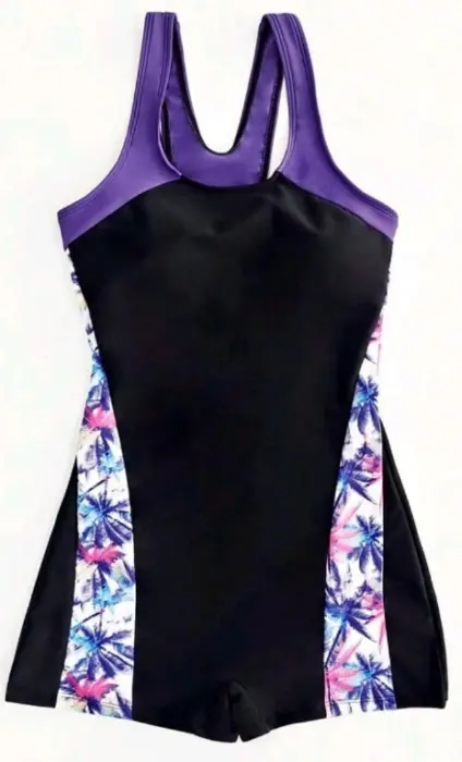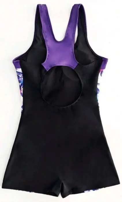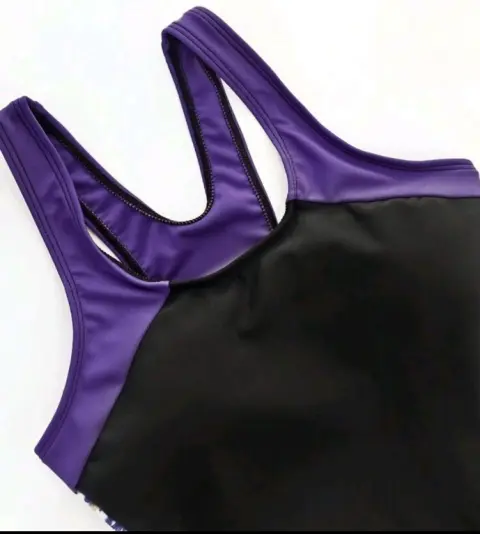 TRAJE DE BAÑO NUEVO TALLA CHICA CON LYCRATIPO SHORTCOLOR MORADO CON NRGRO