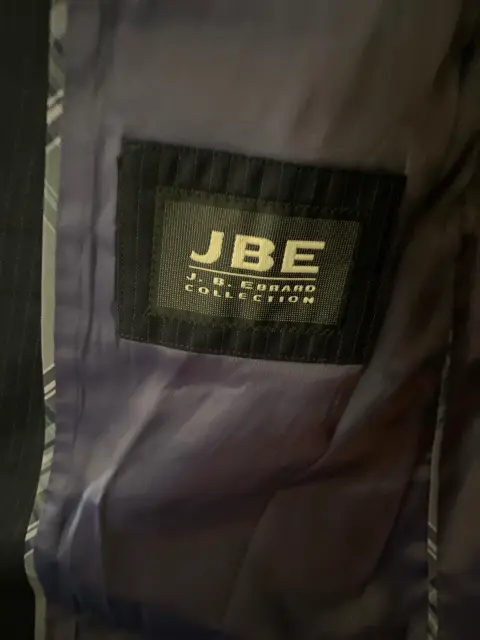 TEAJE COMPLETO JBE. BONITO TRAJE COMPLETO COLOR AZUL NAVY CON LÍNEAS DELGADAS MARCA JBE BRAND COLLECTION TALLA DEL SACO 42RPANTALÓN TALLA 36 EN ETIQUETA MEDIDASSACO. ……..PANTALÓN LARGO. 75 cm. ….CINTURA 47 cmHOMBRO 47 cm ….TIRO 28 cmAXILA 49 cm. …..CADERA 56 cm MANGA. 63 cm ….LARGO. 1.00 CINTURA 50 cm .***NO TIENE TINTORERÍA ***
