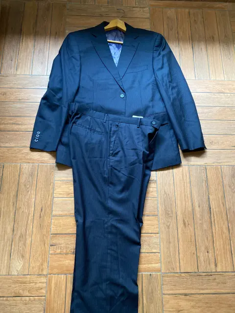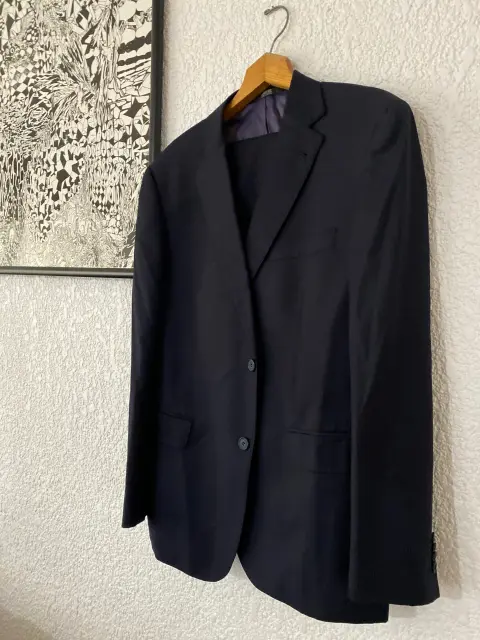 BONITO TRAJE COMPLETO COLOR AZUL NAVY CON LÍNEAS DELGADAS MARCA JBE BRAND COLLECTION TALLA DEL SACO 42RPANTALÓN TALLA 36 EN ETIQUETA MEDIDASSACO. ……..PANTALÓN LARGO. 75 cm. ….CINTURA 47 cmHOMBRO 47 cm ….TIRO 28 cmAXILA 49 cm. …..CADERA 56 cm MANGA. 63 cm ….LARGO. 1.00 CINTURA 50 cm .***NO TIENE TINTORERÍA ***