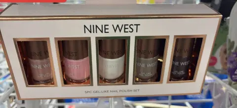 Set de Esmaltes de Uñas Tipo Gel de Nine West (5 piezas). Este set incluye varios colores de esmalte de uñas con un acabado similar al gel. Los tonos que tiene son: Serenity, Delight, Lumina, Sandstone y Plum.Características: Ofrece un acabado brillante y duradero como el gel, sin necesidad de lámpara UV/LED para su secado. Uso: Ideal para crear manicuras en casa con un aspecto profesional.