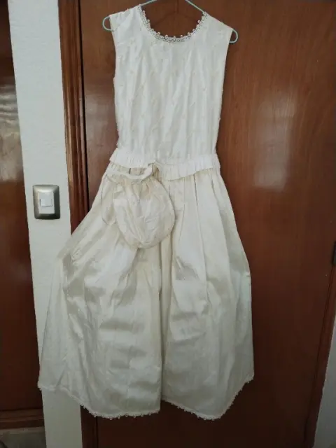 Hermoso vestido para primera comunión color marfil, de seda como nuevo, talla 16, largo al tobillo