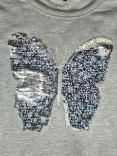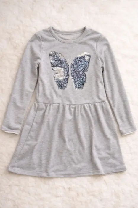 Vestido mariposa lentejuelas reversible. Hermoso vestido para niña, gris con lentejuelas, muy cómodo y fresco!! La mariposa es reversible y cambia de color