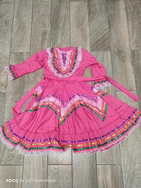 Lindo vestido regional mexicano para niña, talla 6 ,rosa mexicano con listones multicolor, linda figura en cintura y con vuelo en la parte de falda. Tiene 2 detalles en la parte de abajo misma que subo en últimas fotografías