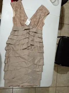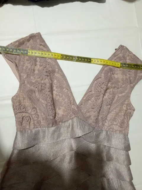 Vestido elegante Adrianna Papell talla 4. nuevo con etiqueta de tienda Medidas de hombro a hombro 47cm De axila a axila 40cm, de cintura 36cm, de cadera 43cm, y de largo mide 94cm es un paco más largo de la parte de atrás mide 99cm