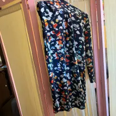 Bello y fresco vestido camisero, de manga larga con olan en el cuello, botones en puños y en la parte de adelante de color dorado. Medidas de axila axila 43 y de cintura 45, la tela no estira.