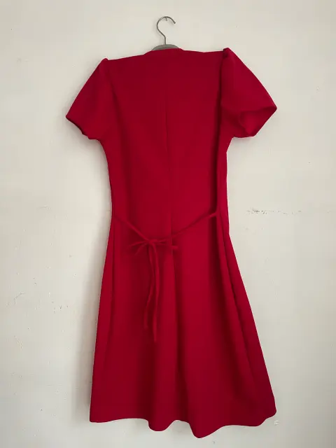 Bonito vestido rojo 🌹. Bonito vestido rojo, manga corta, escote en V, con cinta para ajustarlo al cuerpo, botones en aspecto plata. Marca: Vertiche Talla: S Largo: 90cm