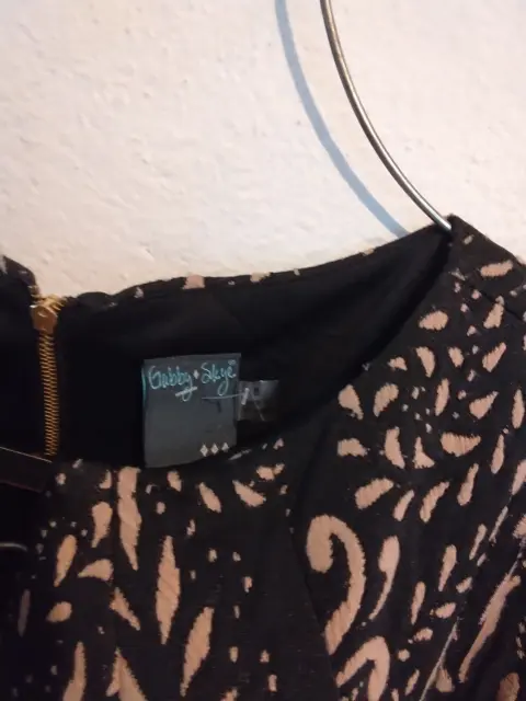 Bonito vestido talla M Marca Gabby Skye. Vestido manga corta tela 100 % poliester un poco gruesa para estos tiempos frescos de uso en excelente estado medida de axila 90 cm talla M marca Gabby skye.