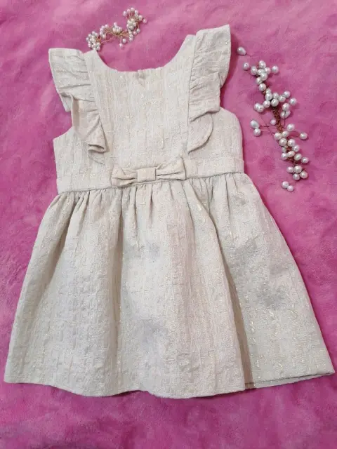 Encantador vestido. Talla 2T elegante en excelentes condiciones tono dorados