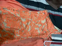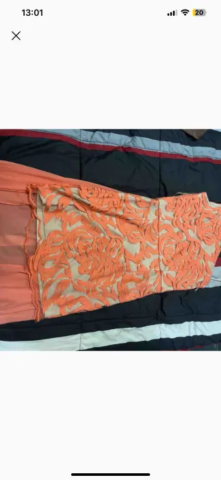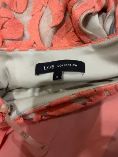 Hermoso vestido corto con una sobrefalda color salmón con forro, marca lob talla 2 (M)