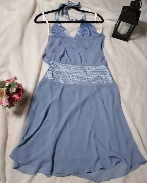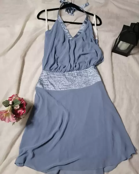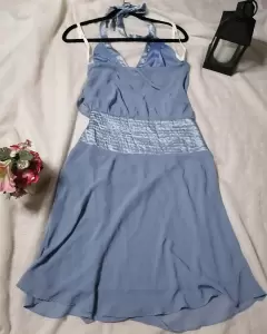 Vestido azul cuello V halter.Sin detalles. Fresco. No estira.Talla 34Medidas:Axila a axila 42cmLargo desde axila 85cm💚 Sin detalles, te va a encantar!!* Compra más artículos de mi perfil y mejoro el precio* 💋Elige en todo mi clóset y combina lo que quieras 😎Si es tu primer compra busca en la última imagen el código, ingresalo antes de pagar 😉