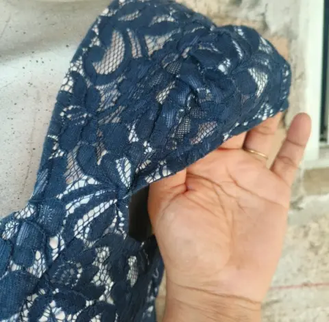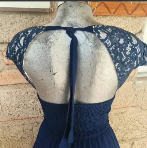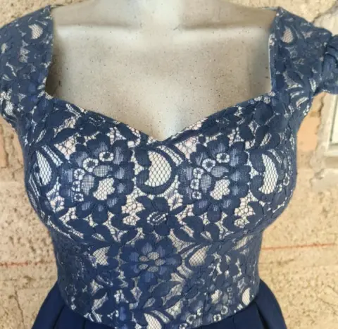Hermoso vestido de fiesta, escote corazón, descubierto de la espalda, resorte en la parte de atrás del dorso, tres capas de tela en la parte de abajo, bonito detalle fñde encaje en la parte del pecho.