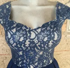 Hermoso vestido de fiesta CHI CHI LONDON. Hermoso vestido de fiesta, escote corazón, descubierto de la espalda, resorte en la parte de atrás del dorso, tres capas de tela en la parte de abajo, bonito detalle fñde encaje en la parte del pecho.