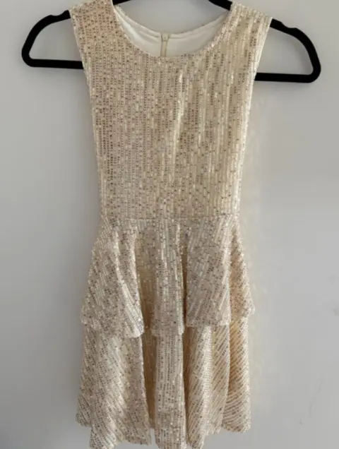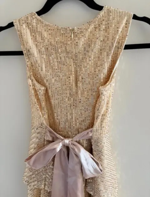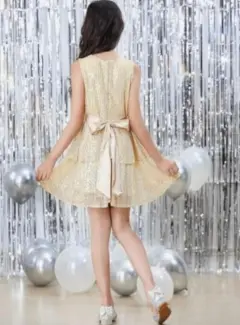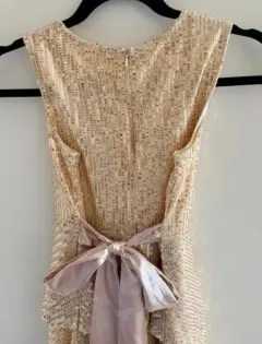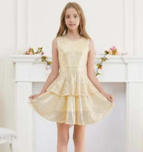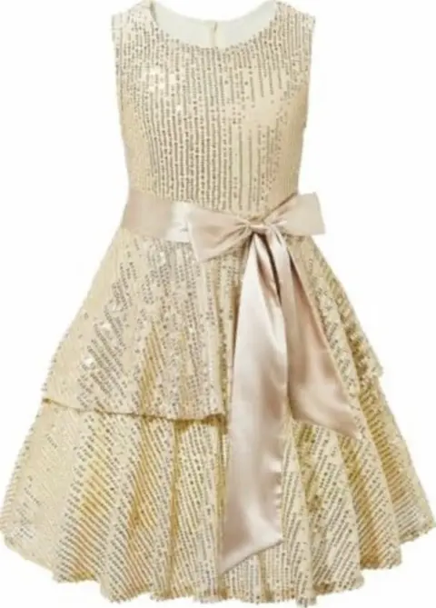 Hermoso vestido de fiesta para niñaTalla 7-9 años AjustableMoño ajustableLentejuelas doradasForradoPerfecto estado