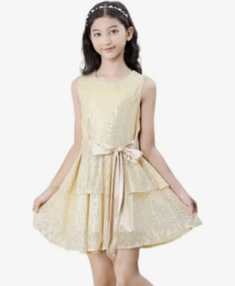 Hermoso vestido de fiesta para niña. Hermoso vestido de fiesta para niñaTalla 7-9 años AjustableMoño ajustableLentejuelas doradasForradoPerfecto estado