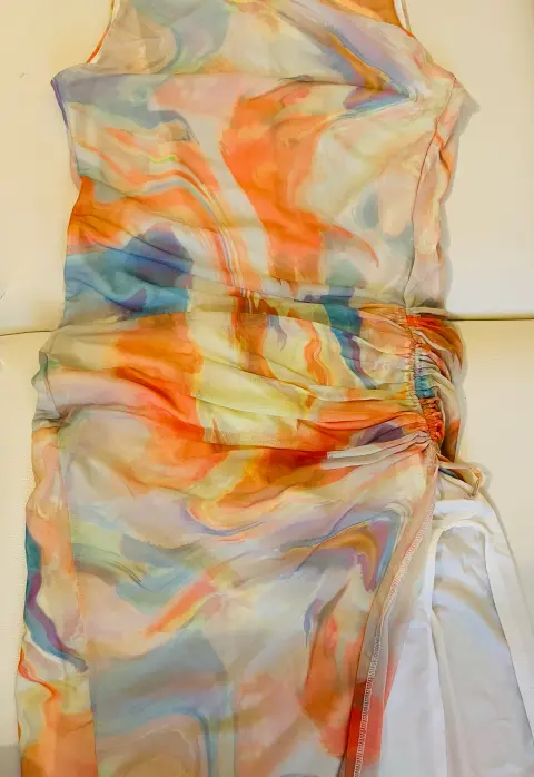 Maxivestido bershka multicolor G. Maxivestido bershka multicolor, talla G, pero también queda a una M más fruncido, abertura lateral