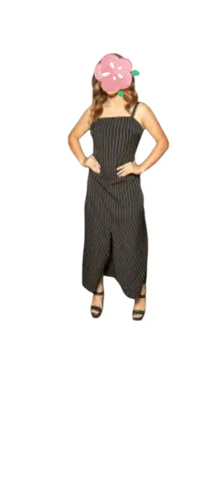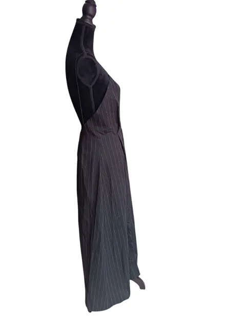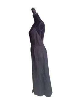 MAXIVESTIDO TALLA M, MARCA SIX CRISP DAYS,100% ALGODON, NEGRO CON FRANJAS BEIGE, ESCOTE EN "V", ESPALDA DESCUBIERTA, BOTONES AL FRENTE,MIDE 30 CM DE HOMBRO A HOMBRO 30 CM, DE AXILA A AXILA 42 CM, DE CINTURA 77 CM, DE CADERA 93 CM, DE LARGO 139 CM, ESCOTE TRASERO 36 CM
