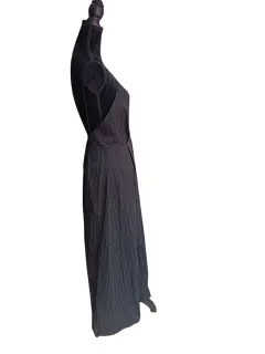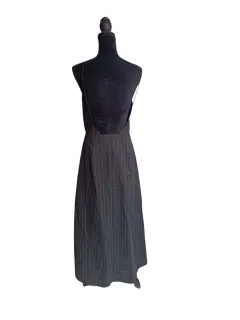 MAXIVESTIDO TALLA M. MAXIVESTIDO TALLA M, MARCA SIX CRISP DAYS,100% ALGODON, NEGRO CON FRANJAS BEIGE, ESCOTE EN "V", ESPALDA DESCUBIERTA, BOTONES AL FRENTE,MIDE 30 CM DE HOMBRO A HOMBRO 30 CM, DE AXILA A AXILA 42 CM, DE CINTURA 77 CM, DE CADERA 93 CM, DE LARGO 139 CM, ESCOTE TRASERO 36 CM
