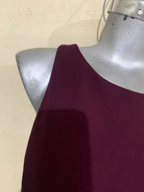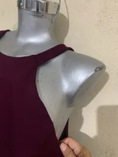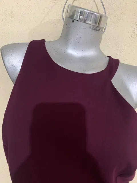Esta precioso con detalle hermoso de diferente tirante en los hombros y es semi ajustable es entre vino y color uva talla M