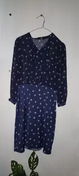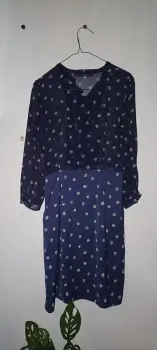 Talla 28, queda arriba de las rodillas. El color azul, levanta mucho y se ve muy formal.