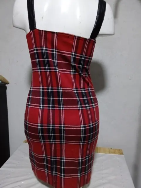 sexy vestido de cuadros. Trae evillas ajustadoras, no tiene forro, ni tiene, bolsas.La tela estira un poco