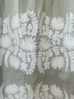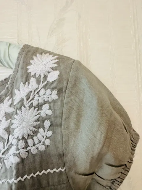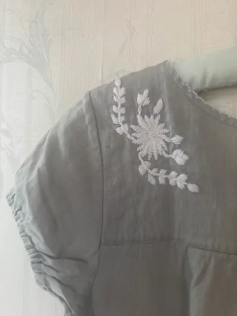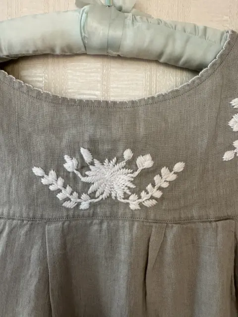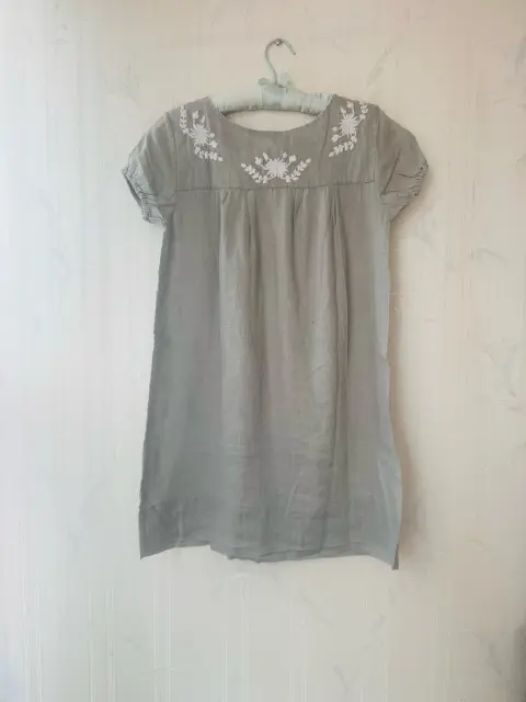 Vestido 100% lino bordado NUEVO!. Hermoso vestido midi en color gris claro 100% lino con detalles de bordados en blanco a contrasted. Muy fresco para la temporada. Lo puedes usar con alpargatas negras o flats plateadas. Más opciones en mi clóset.