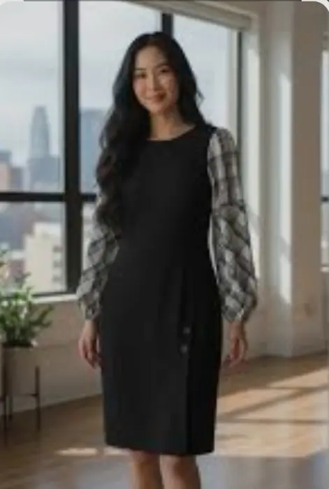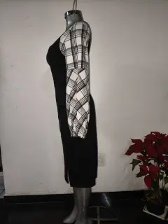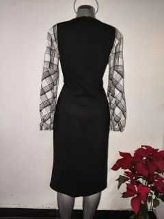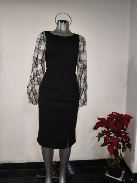 vestido ajustado (bodycon). Es un modelo ajustado, de corte recto que llega por debajo de la rodilla, con una pequeña abertura lateral botones