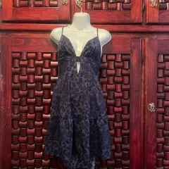 Vestido en color azul marino con estampado de manchitas animal print con escote, y destapado de la espalda súper lindo y cómodo prácticamente nuevo 💕