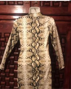 Vestido con estampado animal print , en color beige con abertura a la altura de la pierna en V , da a una talla 7-9 ! Se ve padrísimo!💕😍