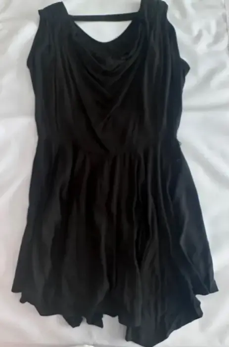 Hermoso vestido con cinta para reestrenar. Es a la rodilla de corte asimétrico ligeramente, lo que lo hace verse hermoso. La caída de la parte trasera lo hace lucir elegante. El cuidado fue en Tintoreria