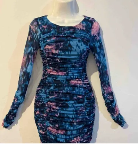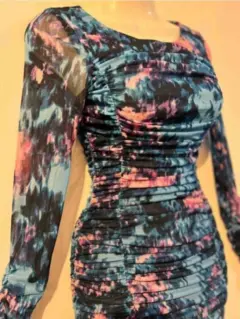 Vestido azul Mesh  h&m. Lindo vestido color azul , con rosaEstilo drapeado Manga largaTalla : XS MARCA : H&M