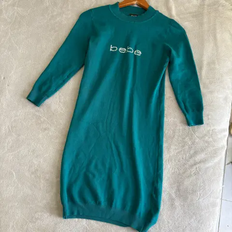 Vestido BEBE. Como nuevo, tela súper suave, sin detalles, la tela estira y ajusta. Está muy bonito. Color turquesa, todo en orden. Es tela tipo de suéter. Hazme una oferta, siempre te aceptaré a la primera * 🤝🏻✅