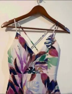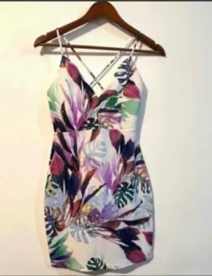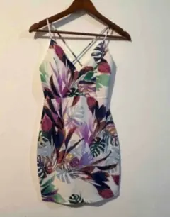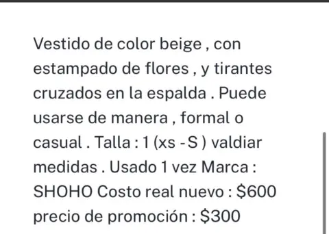 Hermoso vestido color beige claro con flores , Talla : 1 Marca Shoho Escote cruzado en la espalda , tela semi strech